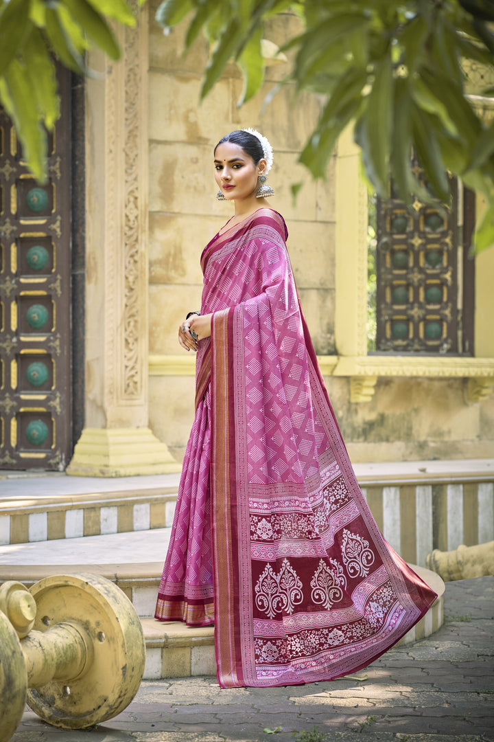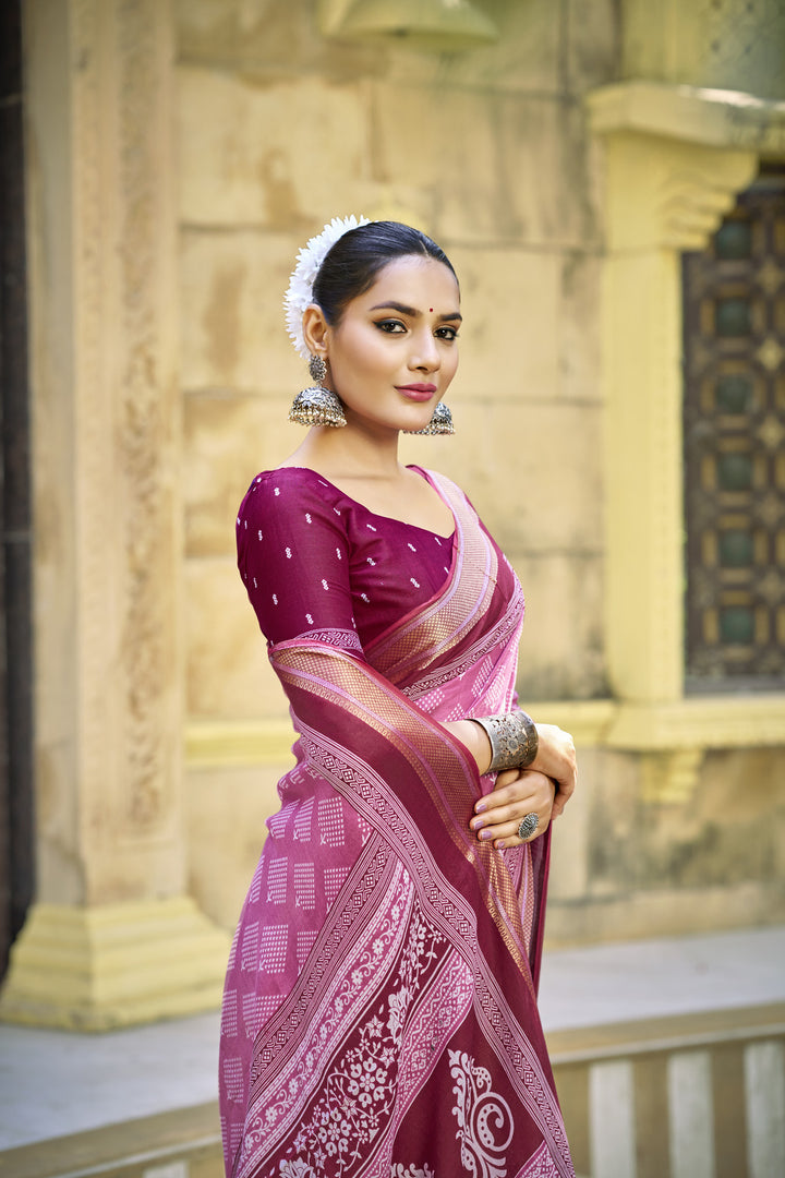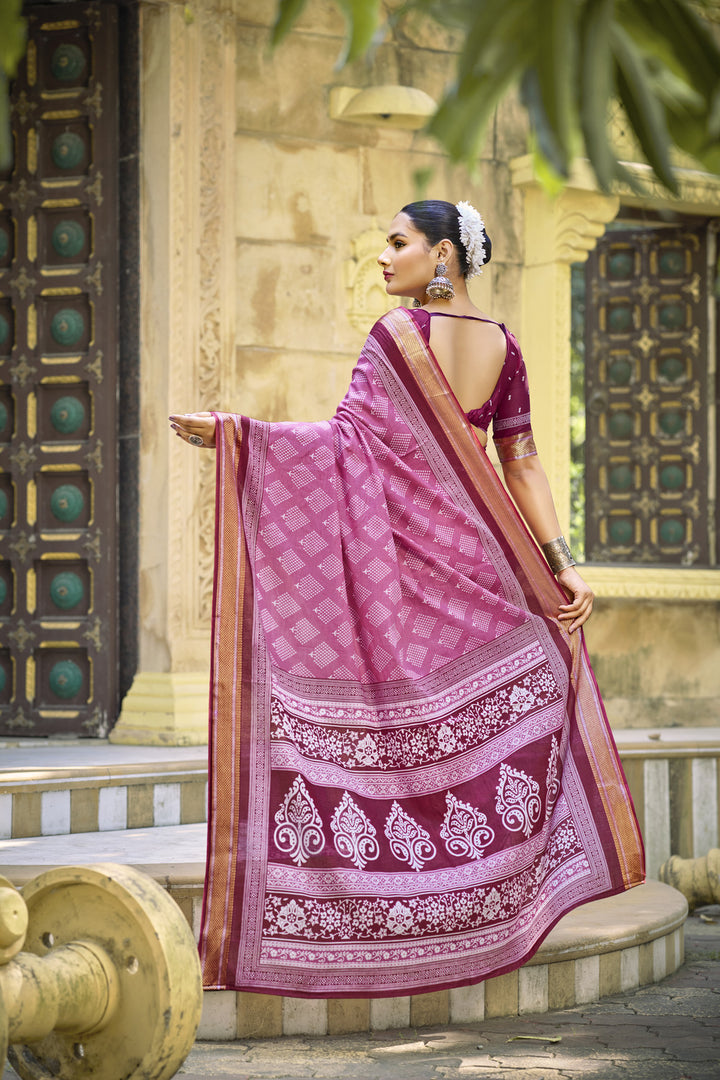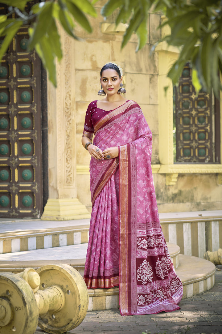 Pink Soft Cotton Saree With Unstiched Blouse