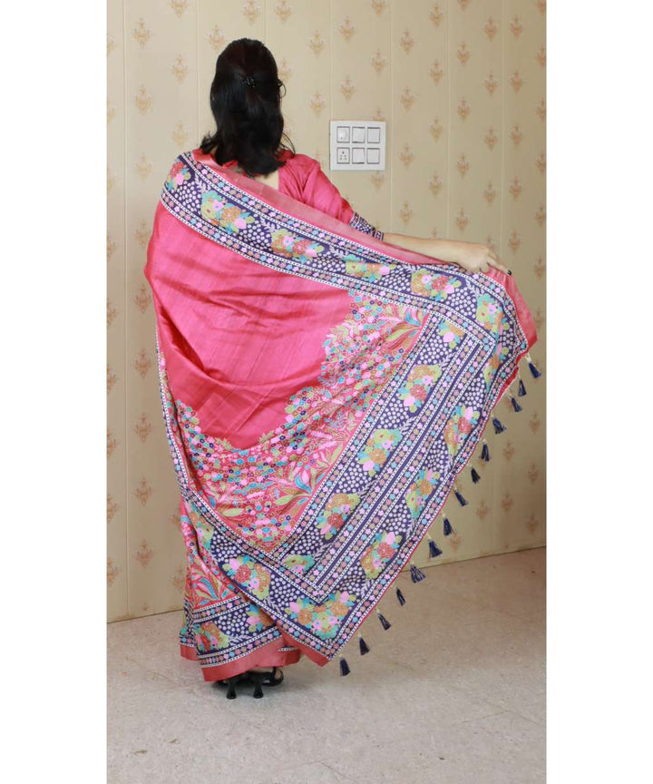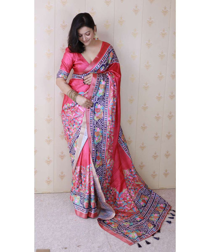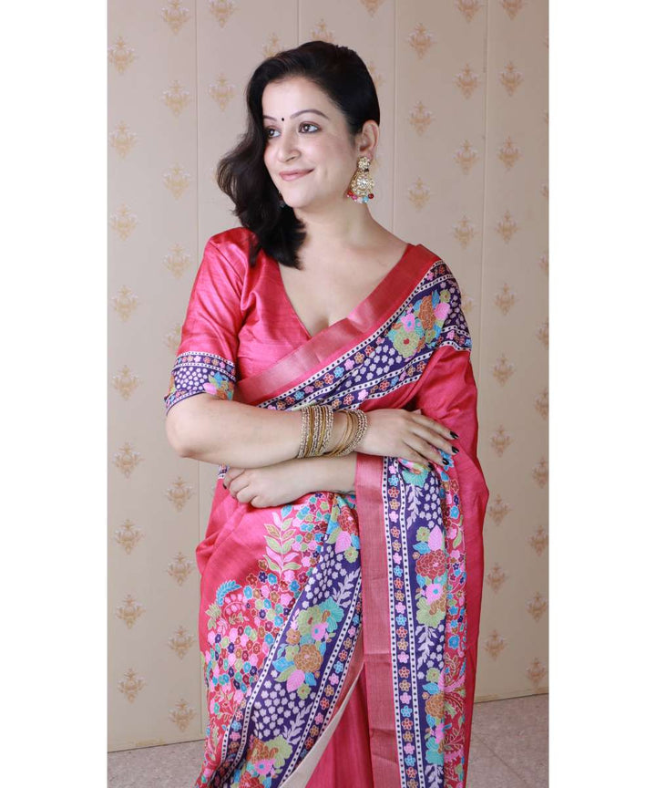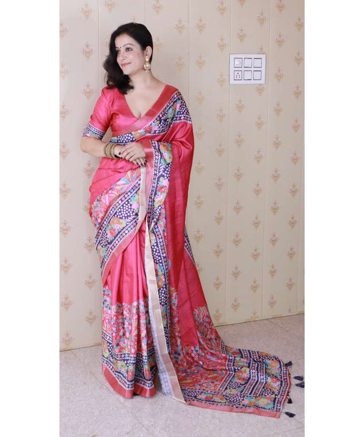 Pink Tussar Silk Saree With Unstiched Blouse