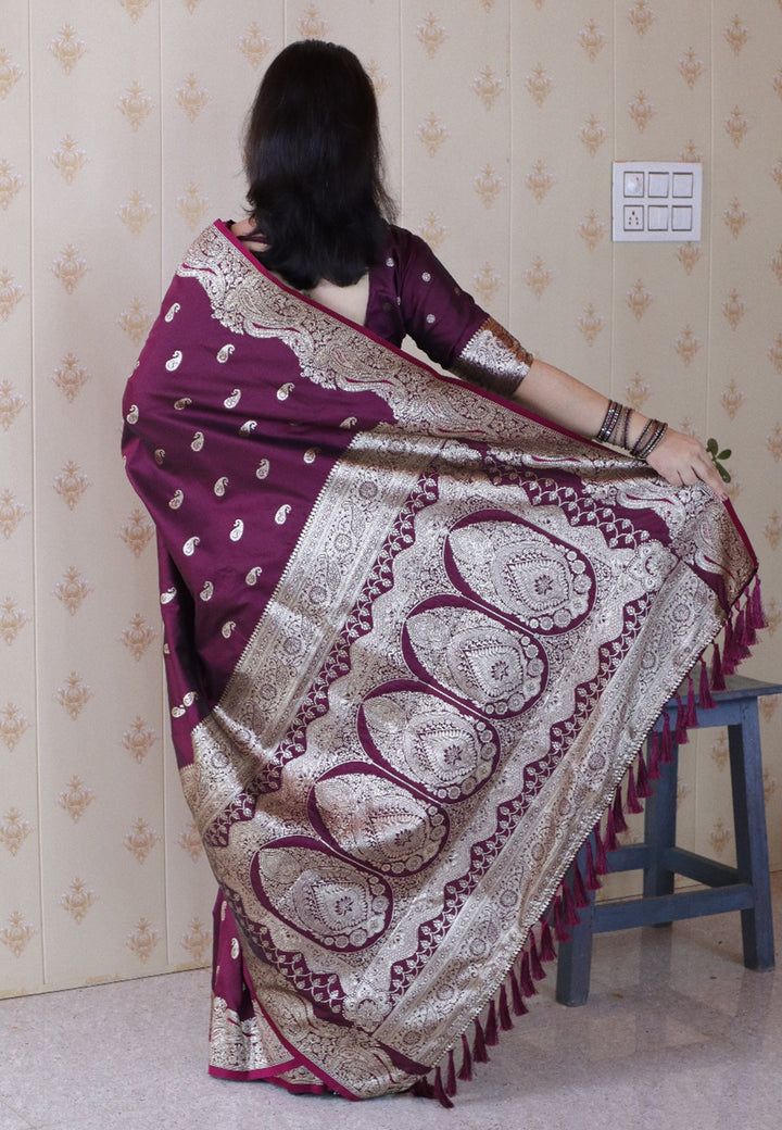 Purple Banarasi Soft Silk Saree With Unstiched Blouse