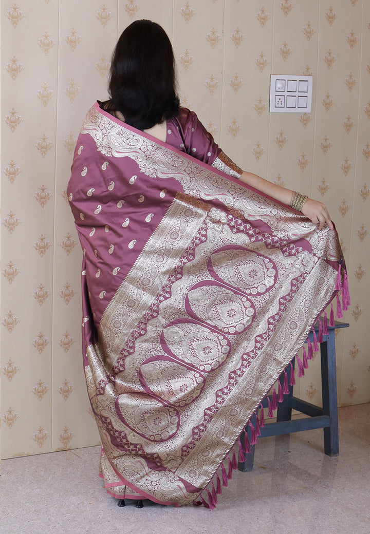 Purple Banarasi Soft Silk Saree With Unstiched Blouse