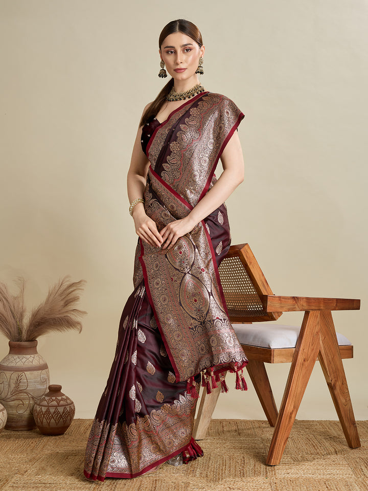 Purple Soft Silk Saree Party Wear With Unstitched Blouse