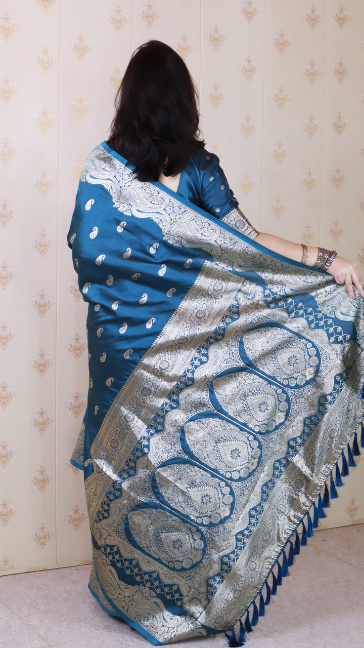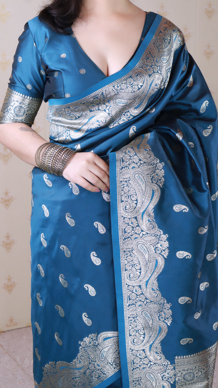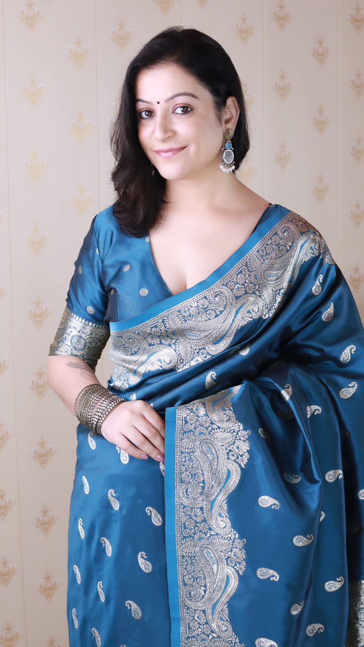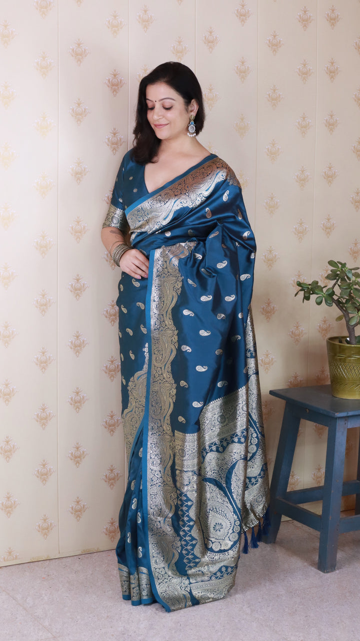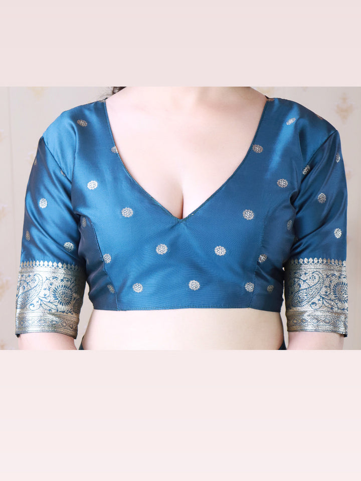 Rama Banarasi Soft Silk Saree With Unstiched Blouse