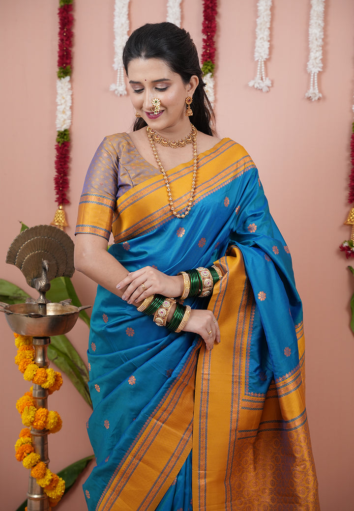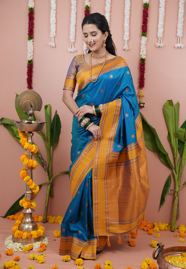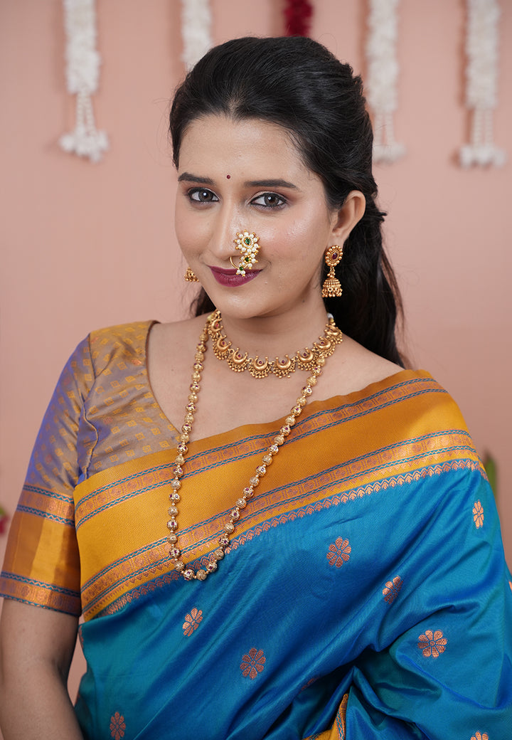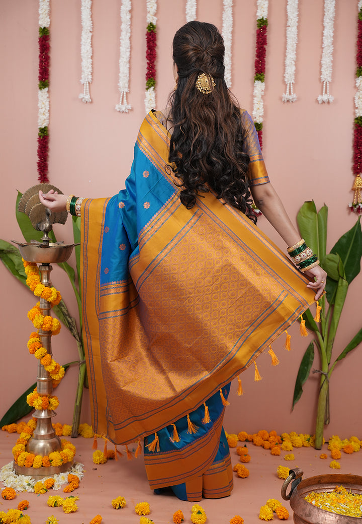 Rama Gold Soft Silk Saree With Unstiched Blouse