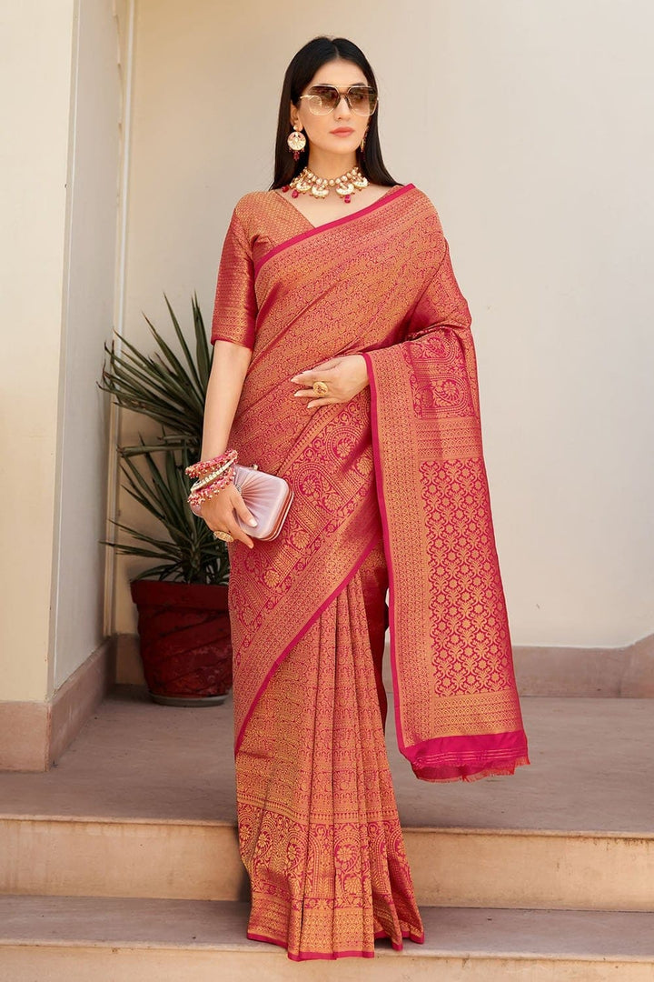 Get this beautiful Kanjivaram Saree online at - The best online store for kanjivaram silk sarees, paithani silk sarees, banarasi silk sarees, organza sarees and linen sarees.
