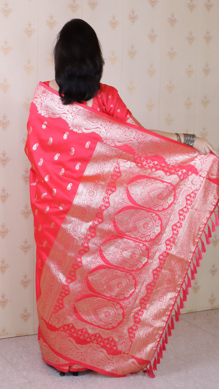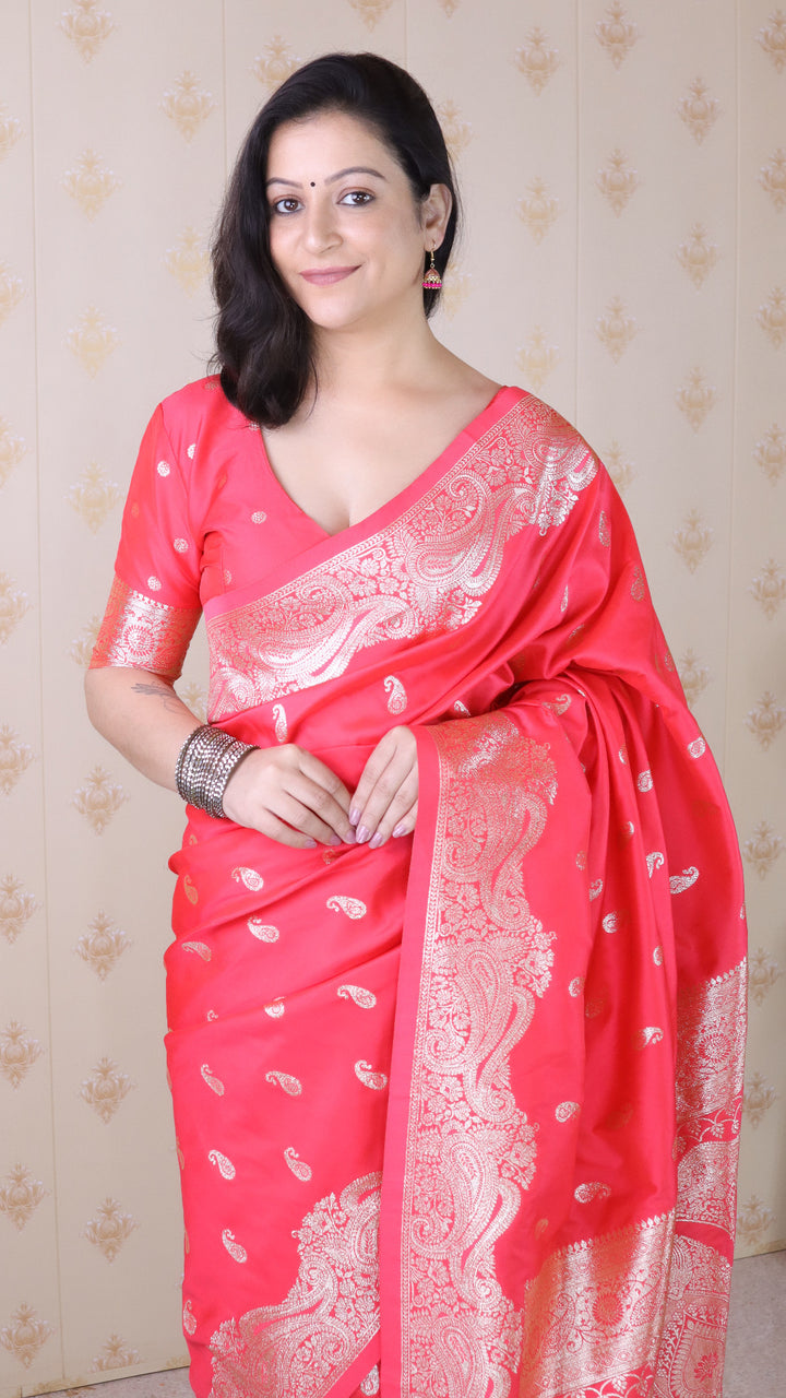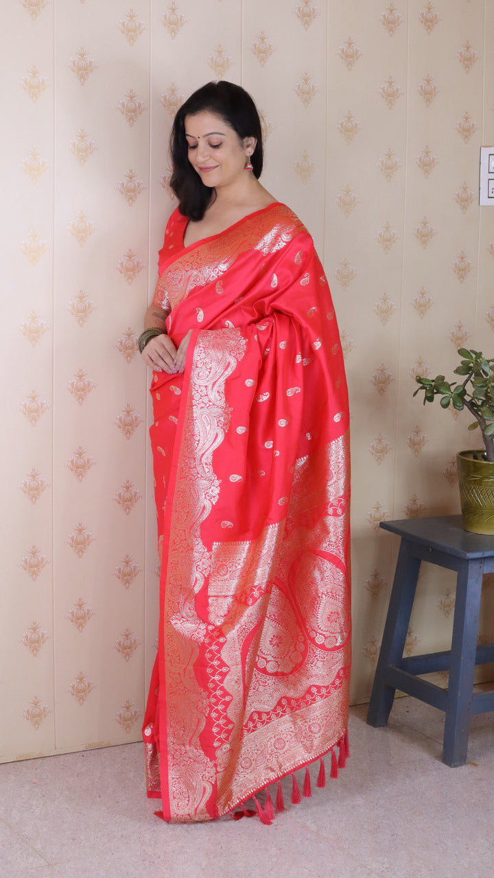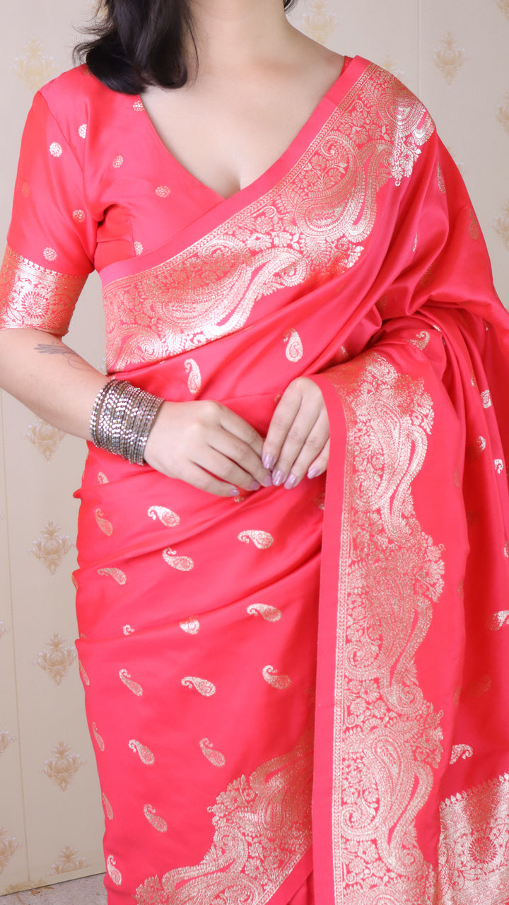 Red Banarasi Soft Silk Saree With Unstiched Blouse