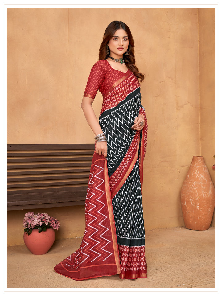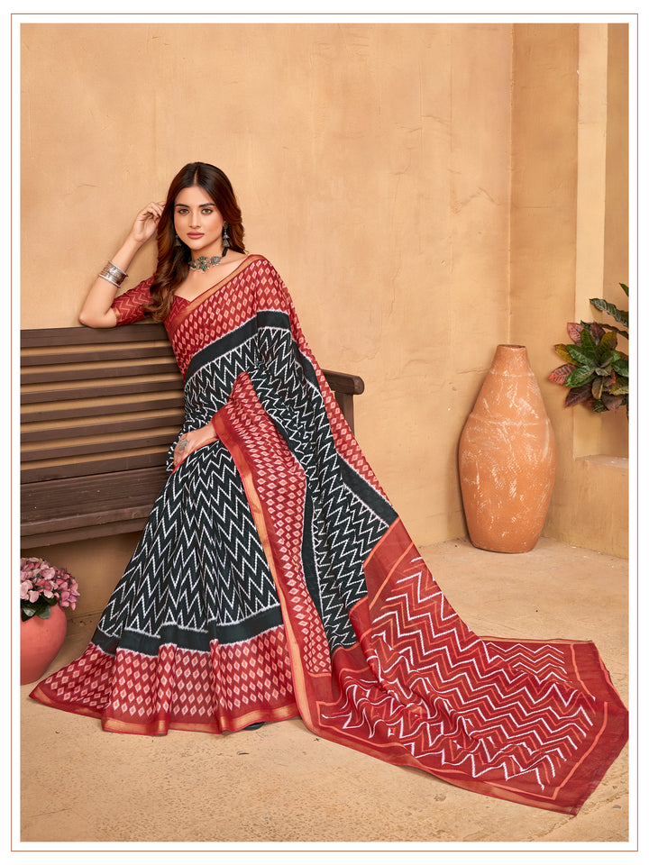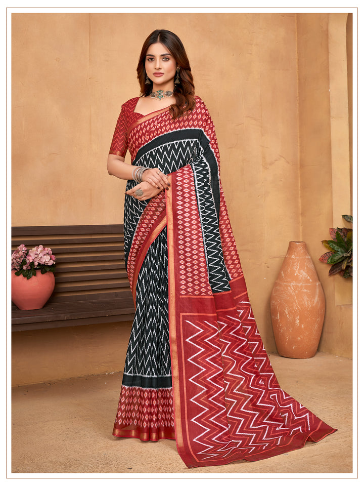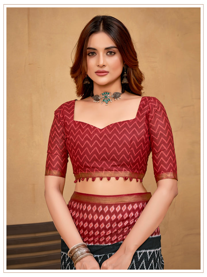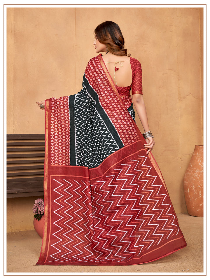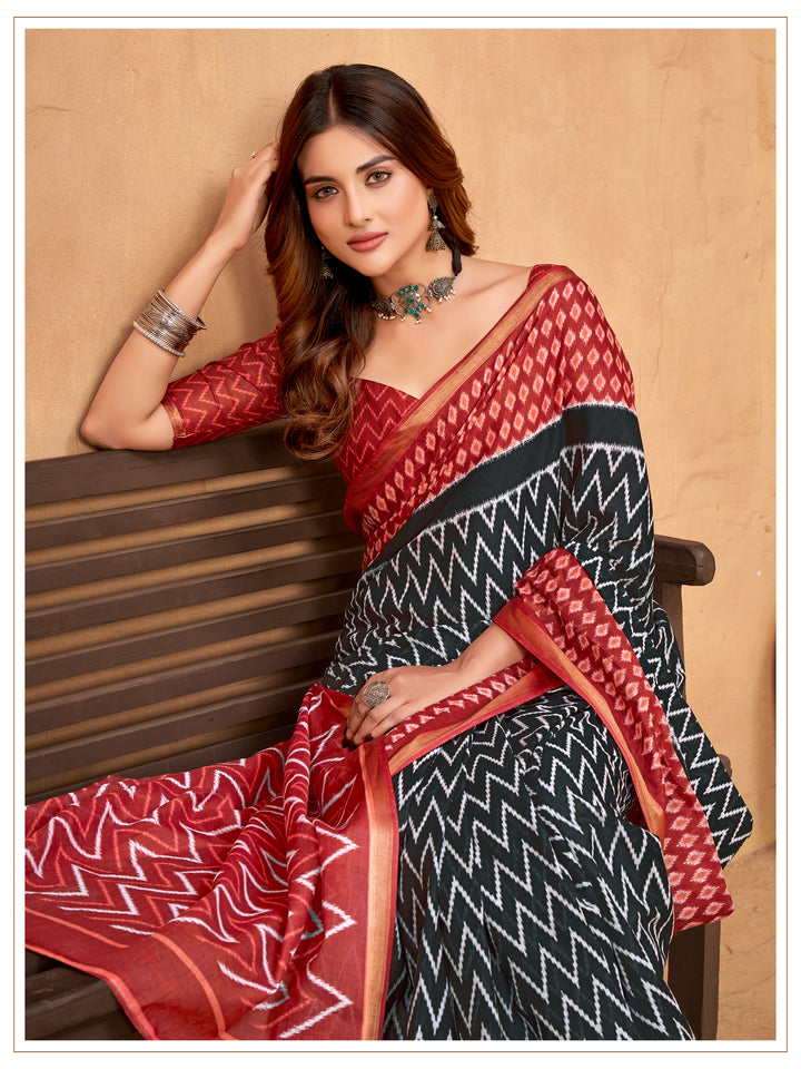 Red & Black Soft Cotton Saree With Unstiched Blouse