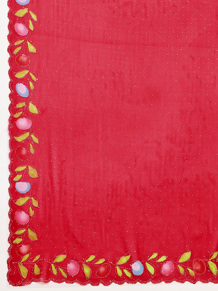 Red Georget Soft Silk Saree With Unstiched Blouse