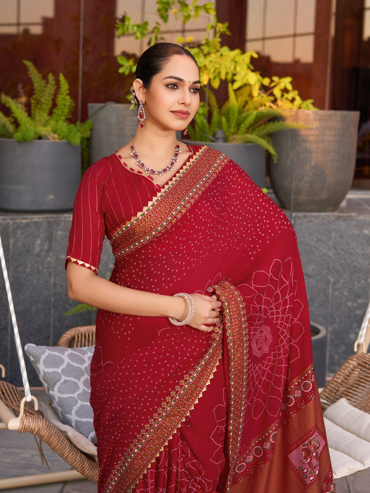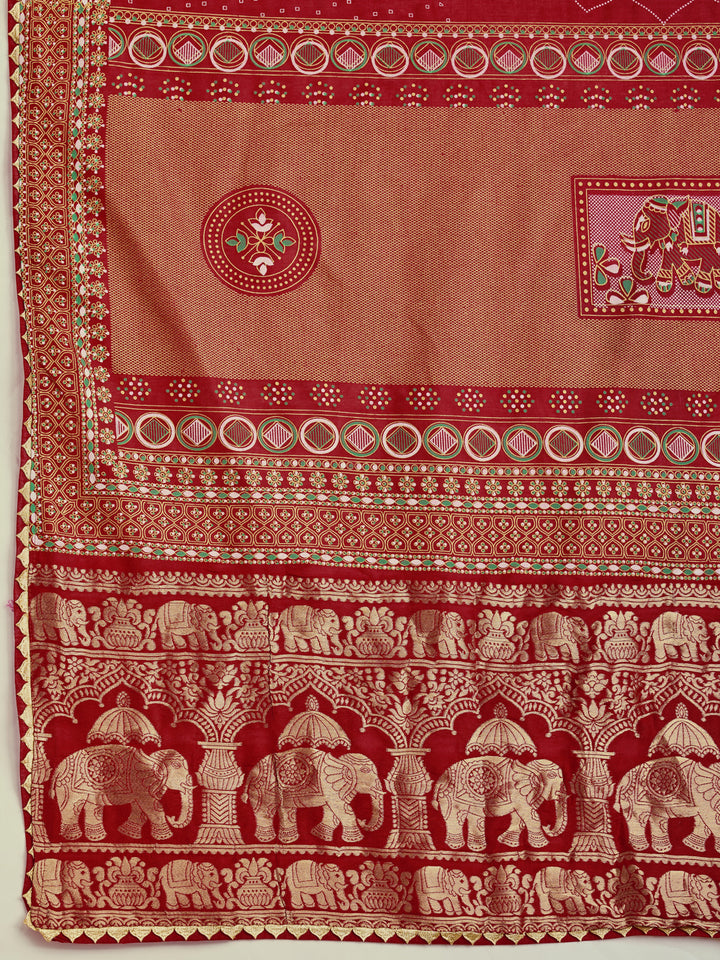 Red Semi Silk Zari Weaves Saree With Unstiched Blouse