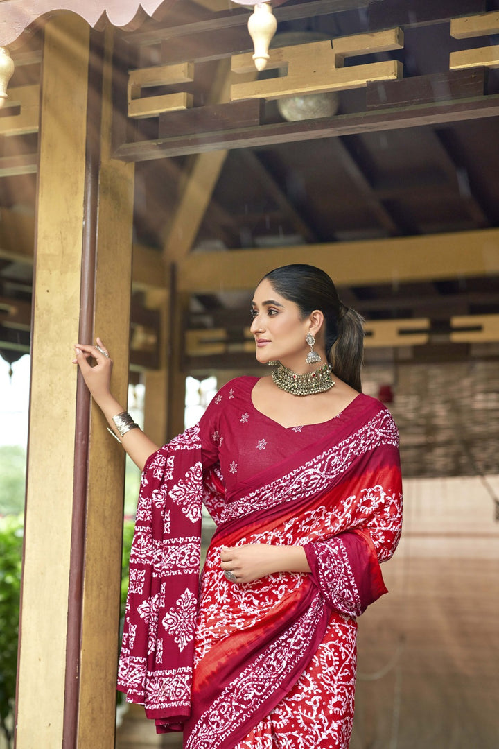 Red Soft Cotton Saree With Unstiched Blouse