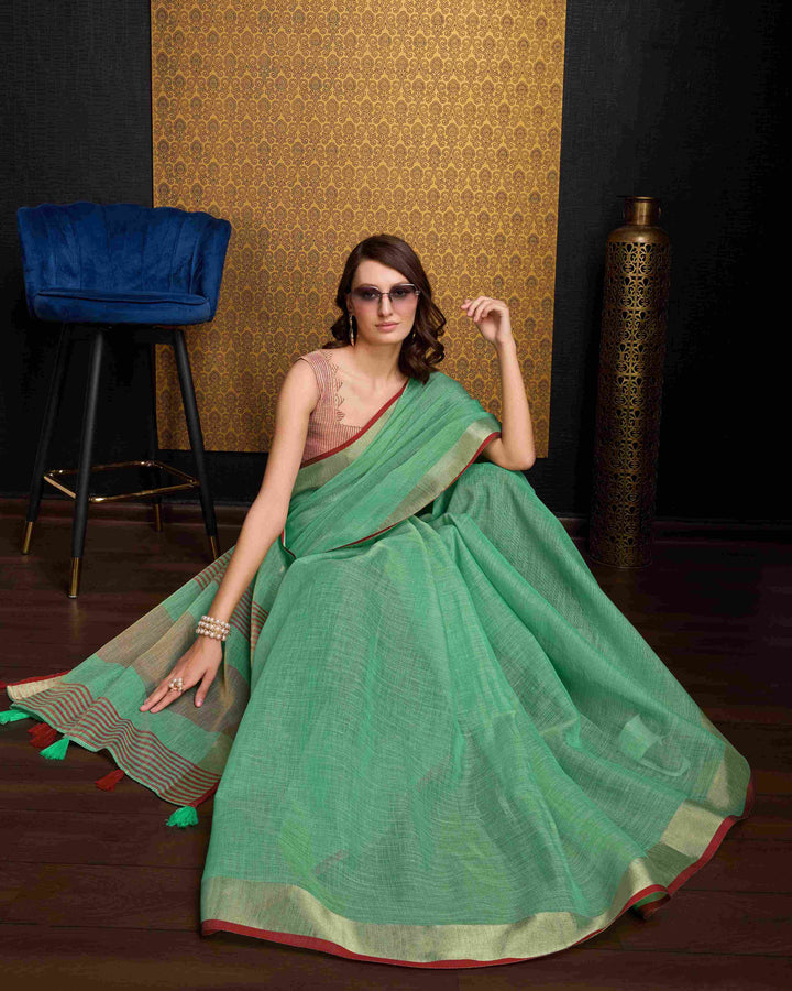 Textured finish: Linen has a natural texture that gives the saree a graceful and refined look.