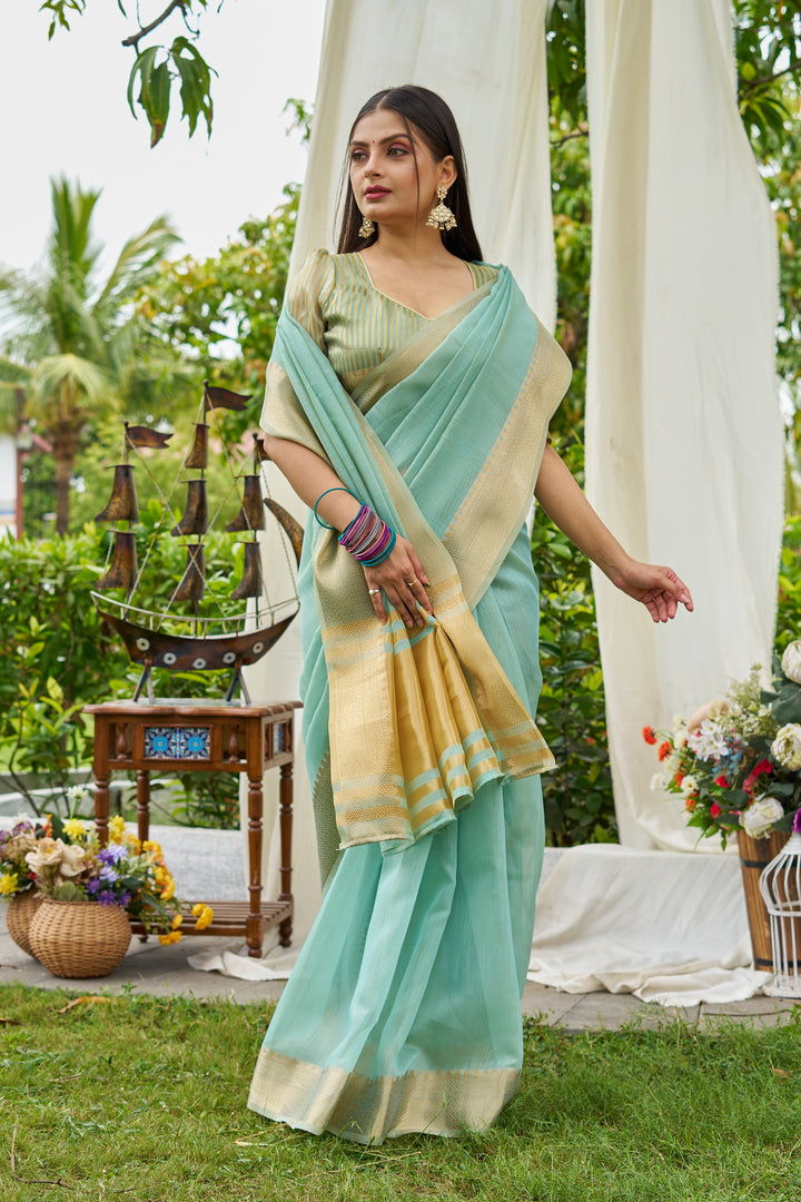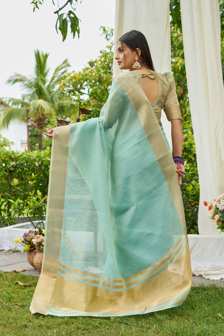 Sky Linen Saree With Unstiched Blouse