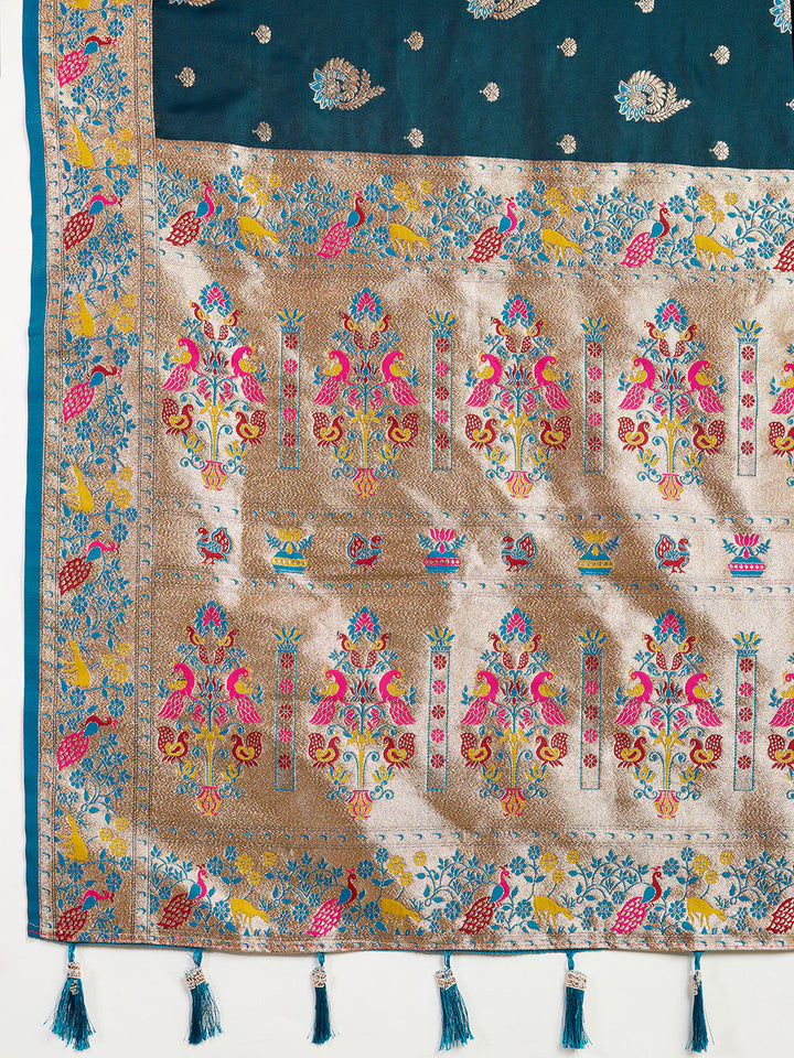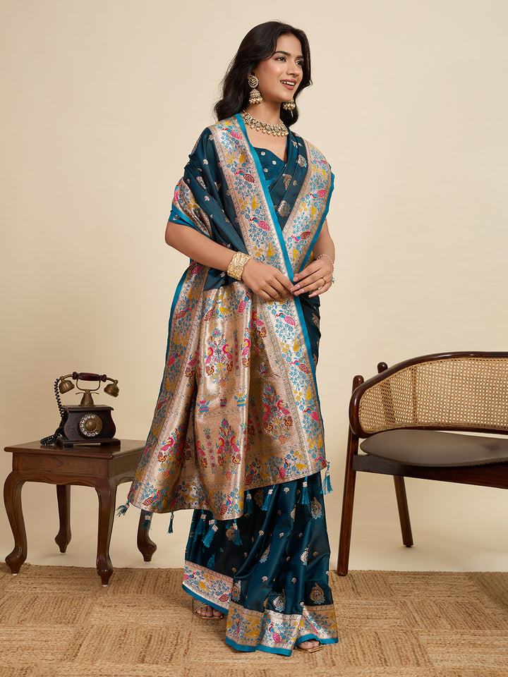 Teal Blue Soft Silk Sarees With Unstiched Blouse