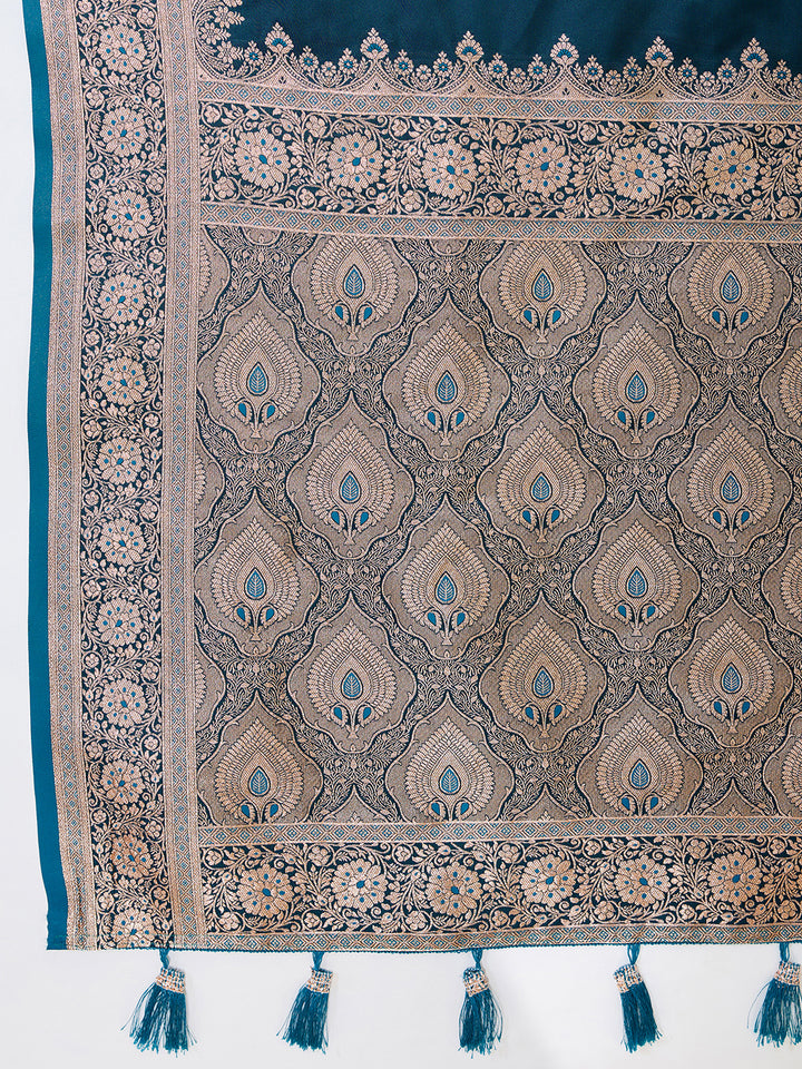Teal Pure Sartin Silk Saree With Unstiched Blouse