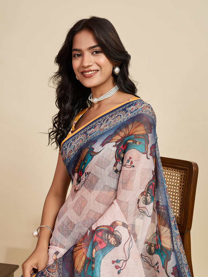 Made from natural linen fibers, these sarees combine comfort with sophistication. Known for their minimalistic charm and elegant drape, linen sarees are a top pick for office and summer events.