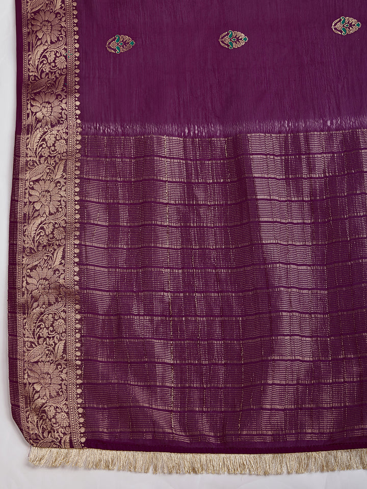 Wine Chinon Soft Silk Saree With Unstiched Blouse