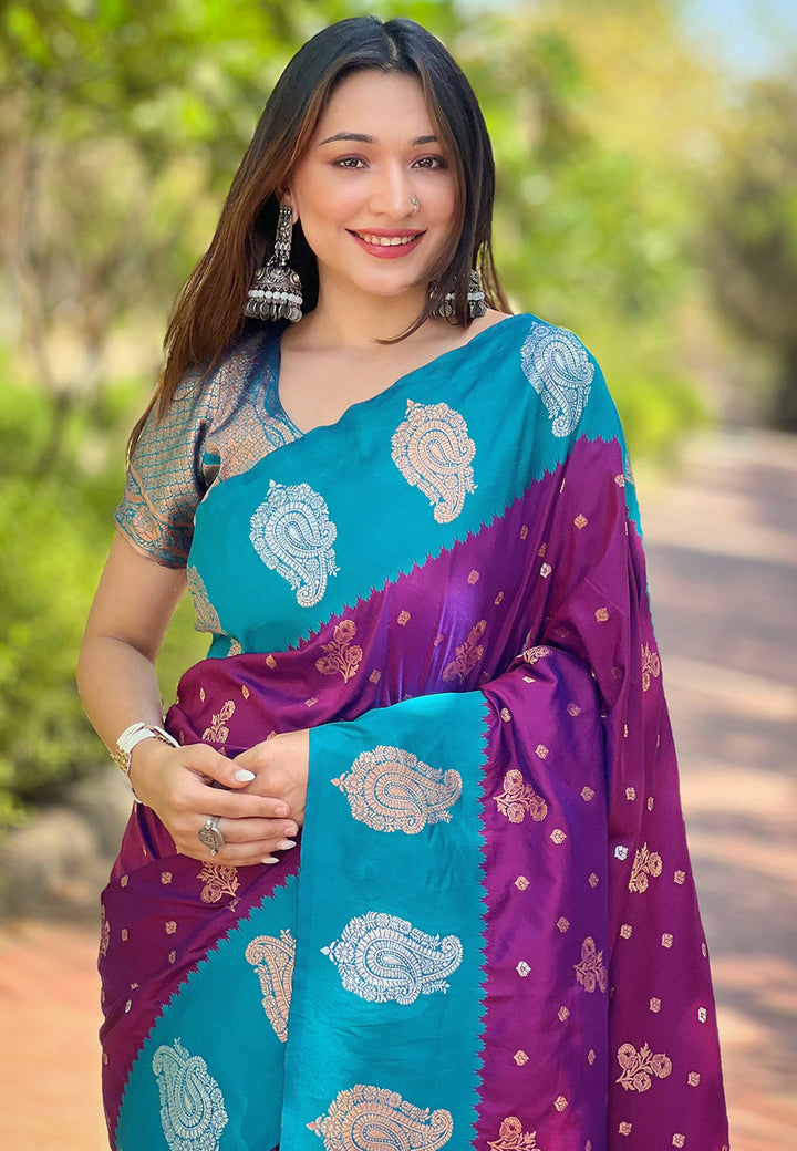 Wine Partywear Paithani Saree With Unstitched Blouse