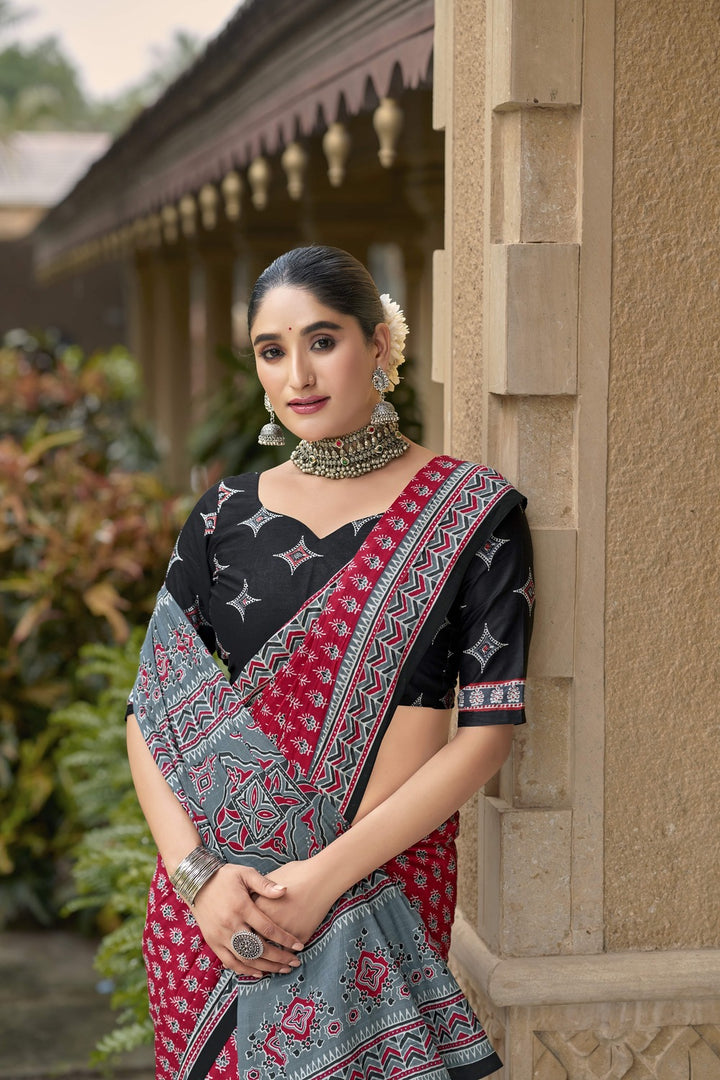 A soft cotton saree is a lightweight, breathable, and super comfortable type of saree—perfect for everyday wear, summers, or casual outings. They blend simplicity with elegance, often featuring minimal prints, checks, stripes, or subtle borders.