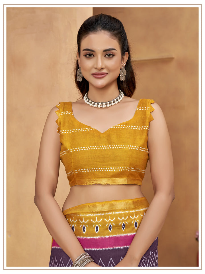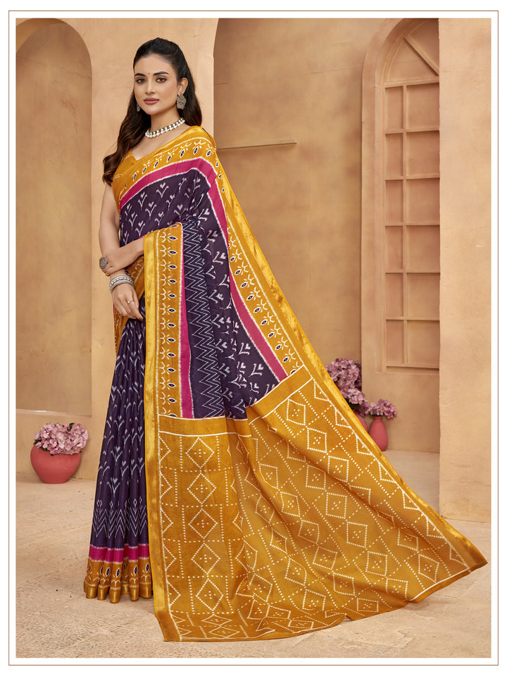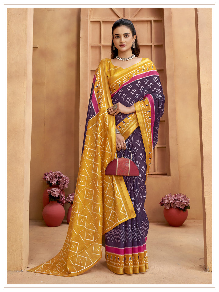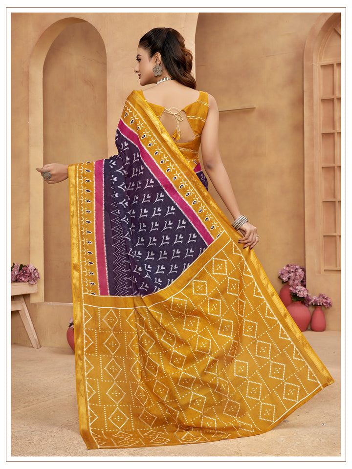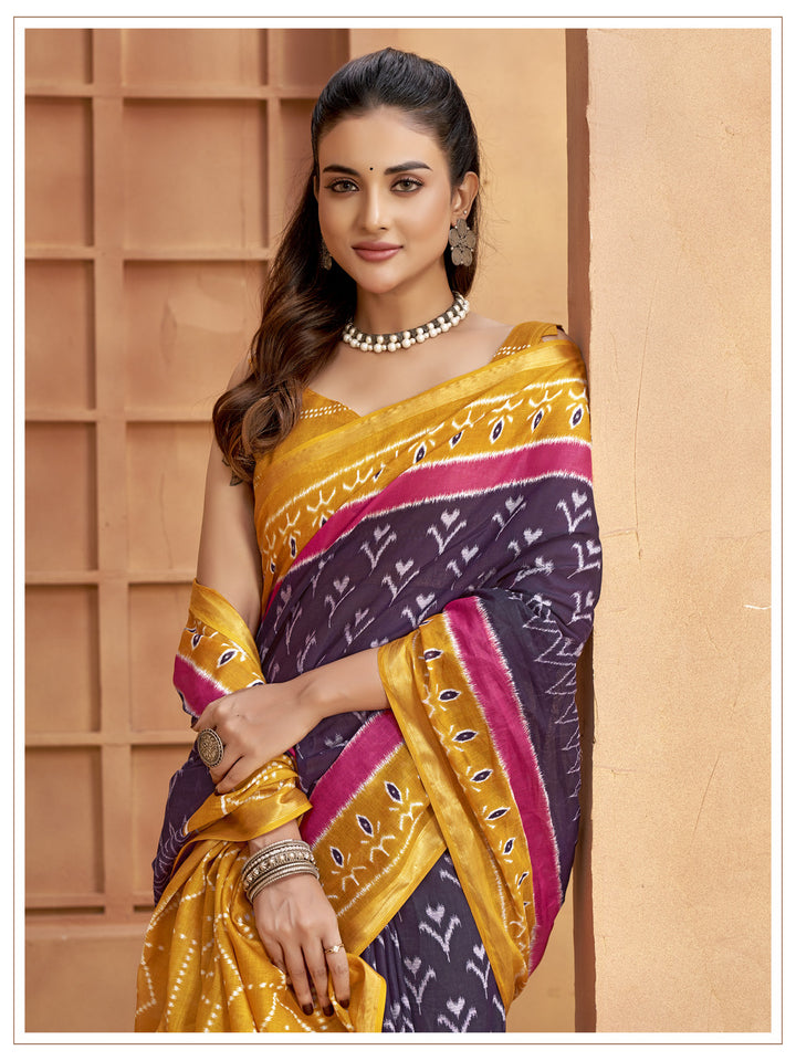 Yellow & Wine Soft Cotton Saree With Unstiched Blouse